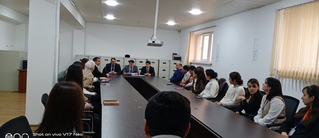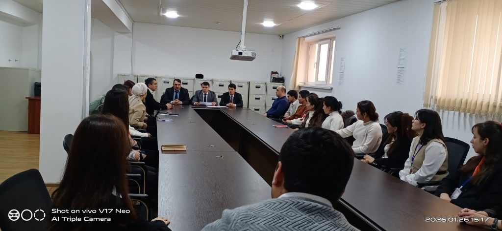 Судяҳои Суди иқтисодии вилояти Суғд Ҳасанзода Ҷ.Х., Эмомализода Н.Э. ва Ҳамроқулзода Б.А. инчунин корманди дастгоҳи суди мазкур Муъминзода Ф. дар бинои Филиали ҶСП ТАҚХ “Ҳумо” дар шаҳри Хуҷанд санаи 26-уми январи соли 2026, бо кормандони Филиали ҶСП ТАҚХ “Ҳумо” дар шаҳри Хуҷанд дар мавзуҳои шарҳи дастуру супоришҳо аз Паёми навбатии Асосгузори сулҳу ваҳдати миллӣ – Пешвои миллат, Президенти Ҷумҳурии Тоҷикистон муҳтарам Эмомалӣ Раҳмон ба Маҷлиси Олии Ҷумҳурии Тоҷикистон, “Барномаи таълим ва тарбияи ҳуқуқии шаҳрвандони Ҷумҳурии Тоҷикистон барои солҳои 2020-2030” аз ҷумла оид ба истиқлолияти давлатӣ ва ҳифзи арзишҳои он, аҳамият ва нақши Конститутсия дар ҷомеаи демократӣ, дастовардҳои байналмилалии Ҷумҳурии Тоҷикистон дар соҳаи об махсусан Даҳсолаи байналмилалии амал “Об барои рушди устувор 2018-2028”, оид ба сарфакорона истифода бурдани энергияи барқ, оид ба шарҳи Қонуни Ҷумҳурии Тоҷикистон «Дар бораи масъулият барои таълиму тарбияи кӯдак», оид ба шарҳи Қонуни Ҷумҳурии Тоҷикистон «Дар бораи танзими ҷашну маросим дар Ҷумҳурии Тоҷикистон», оид ба Стратегияи миллии фаъолгардонии нақши занон дар Ҷумҳурии Тоҷикистон барои солҳои 2021-2030, ки бо Қарори Ҳукумати Ҷумҳурии Тоҷикистон аз 30 апрели соли 2020, №167 тасдиқ карда шудааст доир ба ин мавзӯъҳо суҳбату вохӯрӣ анҷом доданд.