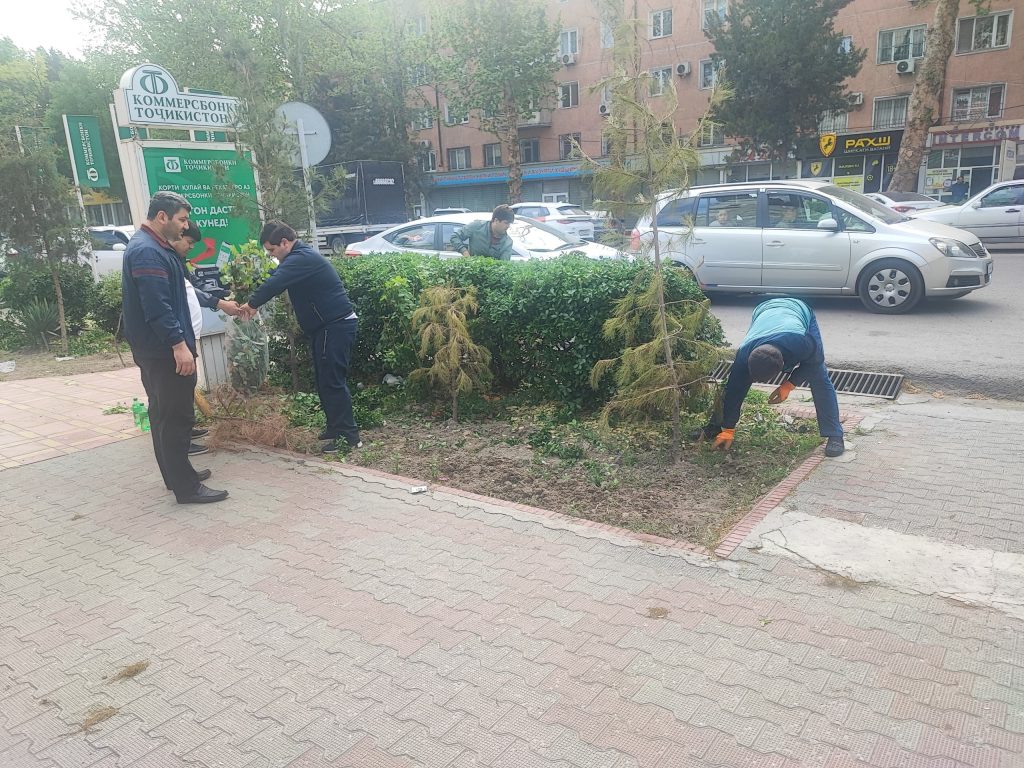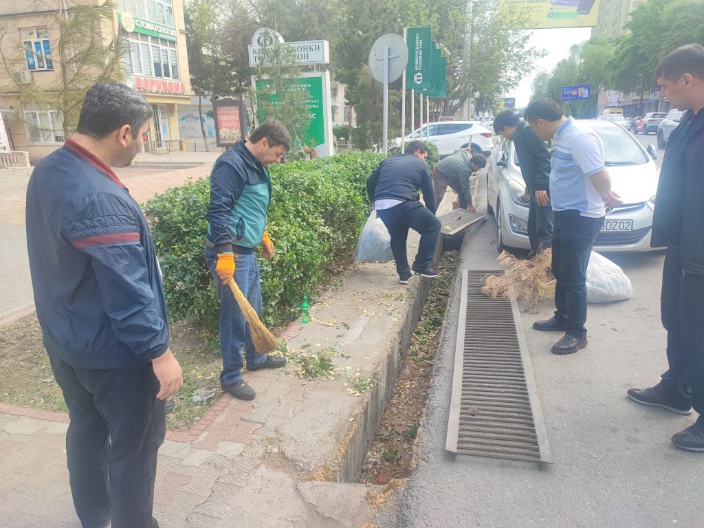 Дар шанбегӣ гирду атрофи бино, ҷуйбори обгузар аз хазонҳо тоза карда шуда, шохаҳои ниҳолҳо ба тартиб дароварда шуд. Инчунин дар утоқҳои корӣ ва даруни бино корҳои тозагӣ ба анҷом расонида шуд.